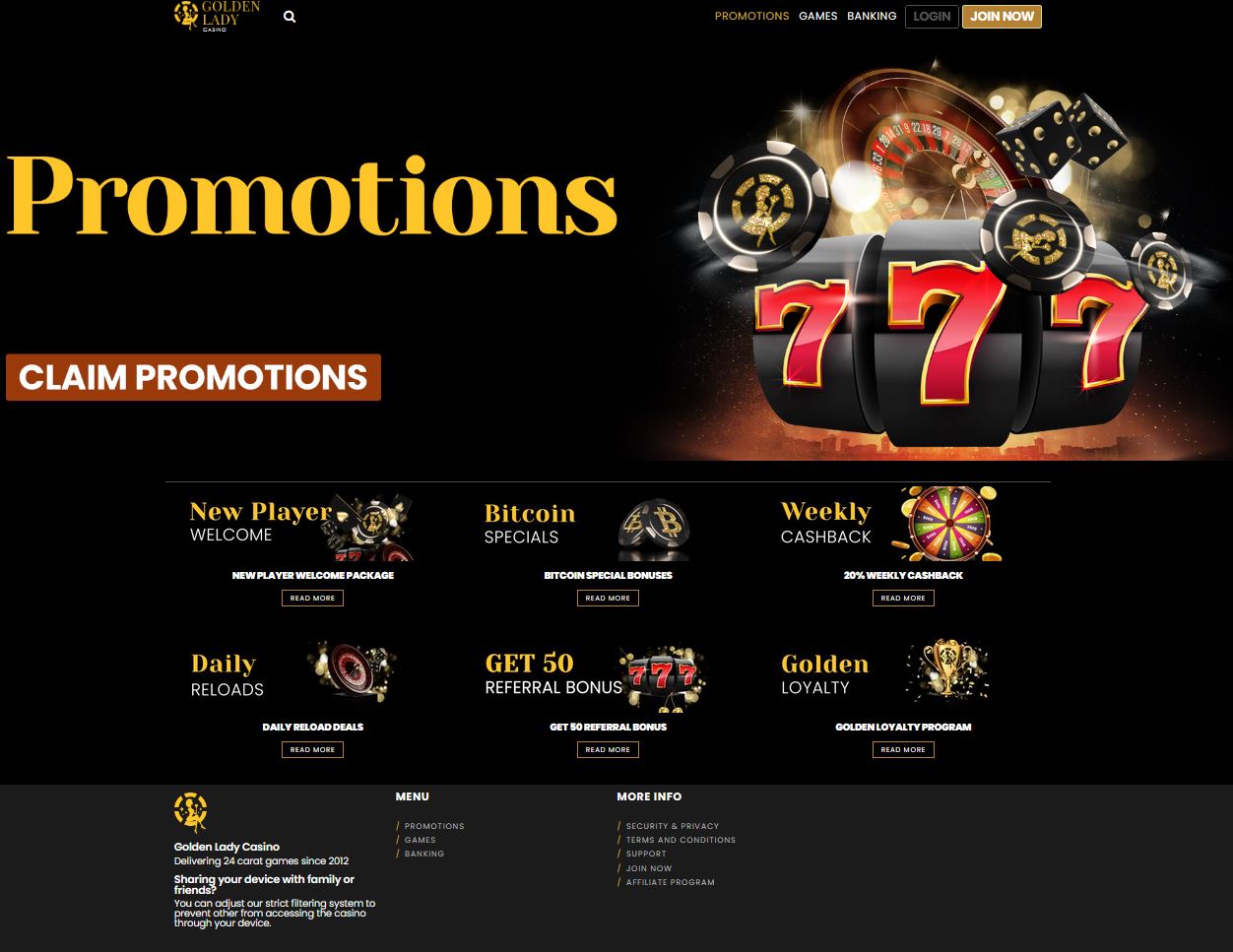 Golden Lady Casino continúa expandiéndose, perfeccionando sus funciones y ampliando su oferta, adaptándose a las necesidades de los jugadores modernos. Su combinación de un amplio catálogo de juegos, sistemas financieros eficientes, promociones atractivas y sólidas medidas de protección lo convierten en una opción atractiva en el panorama de los casinos en línea. Al centrarse en la experiencia individual y la innovación constante, la plataforma desarrolla con éxito un entorno donde el entretenimiento y la fiabilidad van de la mano.